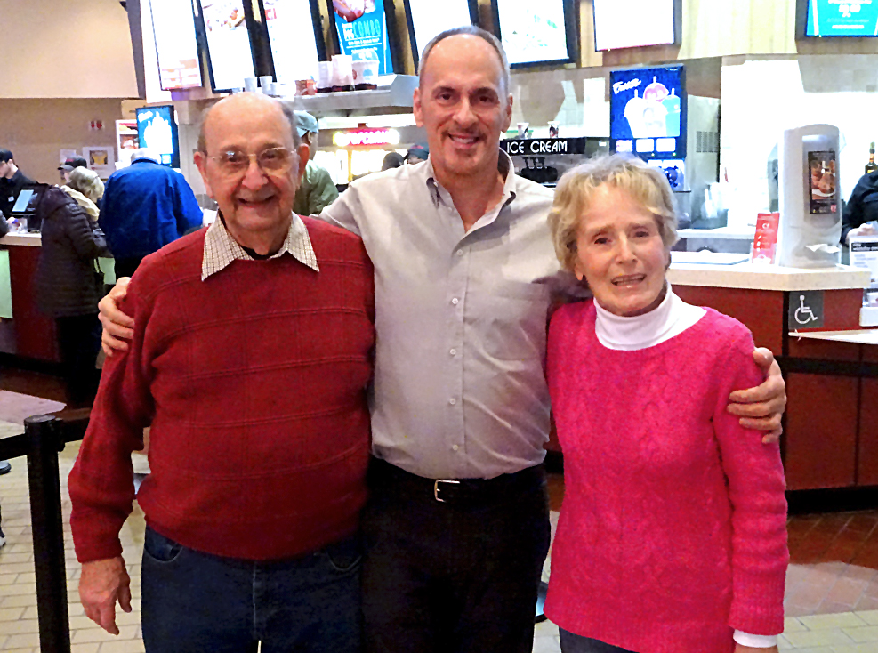 At Celebration Cinema in Portage, MI (Senior Speed Dating Capital of the World, thanks to Kim Phillips, manager of the Portage Senior Center), with Jim and Heike, who met speed dating, attended our encore screening and told their story on local TV!